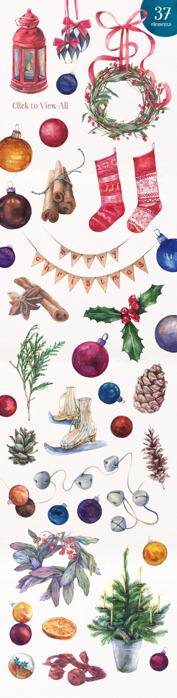 图穷联素材库 » 水彩手绘圣诞装饰元素合集包 Licorice Christm