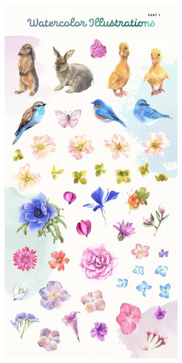 通过透明的背景,以EPS格式和PNG提供的100多种精美矢量将您的艺术技巧提升到极致。叶子,花朵,鸟类,动物,幼崽,蝴蝶都迫不及待地想让您的心充满喜悦,并将常见的项目转变成杰作。卡片,文具,包装,装饰,结婚请柬,网页设计-Summer Bloom Watercolor Set将满足您的所有需求。