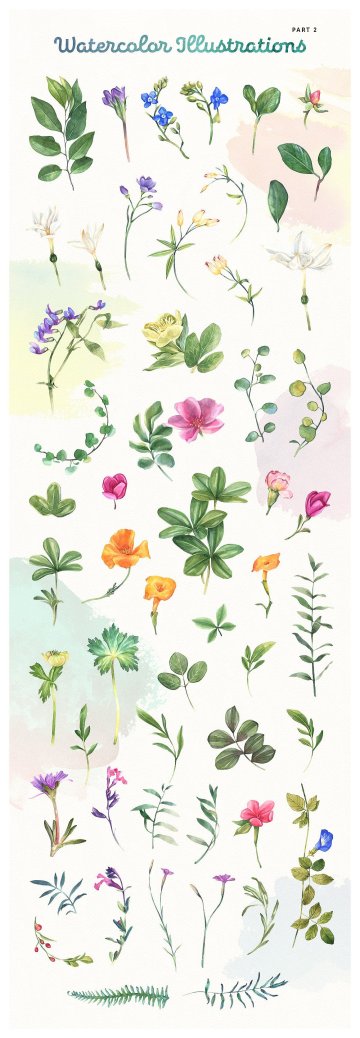 为了确保您的流畅表现,我们已仔细数字化并将其包含在集合中每个元素的包装矢量版本中。这使Summer Bloom Watercolor Set成为您工具箱中不可替代的产品。