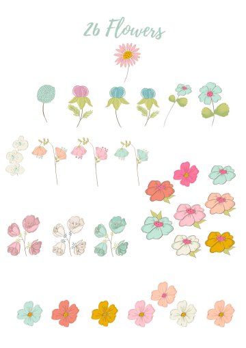 该集合中包含90多个元素,您可以利用自己的创造力来创造惊人的设计。无需特殊软件,所有项目均位于PNG文件中,并具有300DPI透明背景。