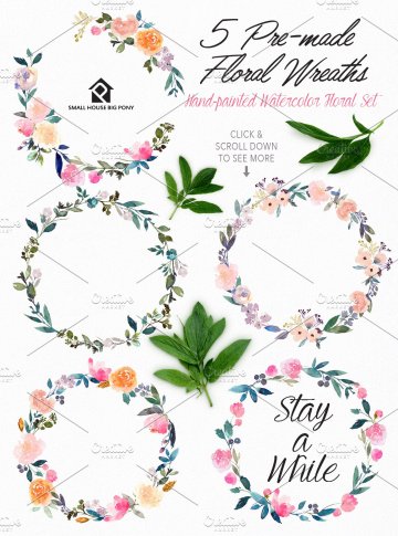5个预制花环(PNG):约。3797px-3744px