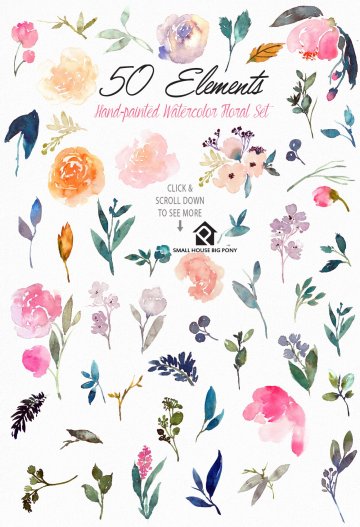 图穷联素材库 » 水彩手绘玫瑰花牡丹花卉剪贴画素材合辑 Corazon - W