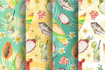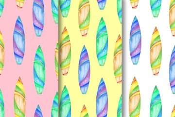 图穷联素材库 » 水彩手绘夏威夷热带冲浪鲜花鸡尾酒等夏季元素 Hawaii.