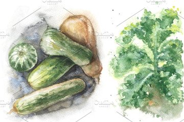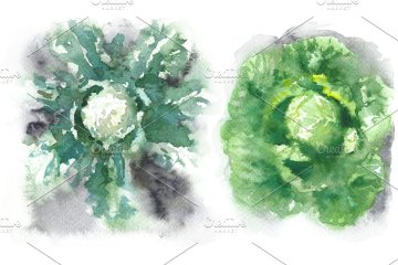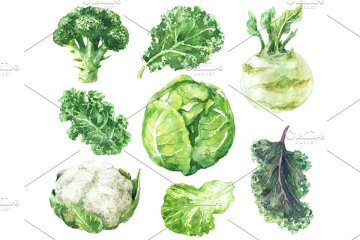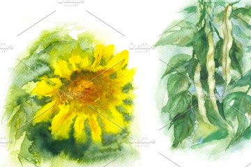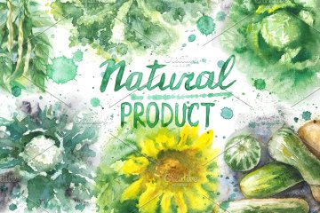 图穷联素材库 » 水彩手绘向日葵西兰花白菜等有机食品剪贴画素材 Natural