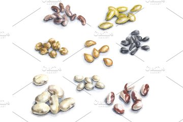 一组南瓜种子,豆类和向日葵种子(jpg,4180px X 3800px,两个有阴影和无阴影的png文件4180px X 3800px);