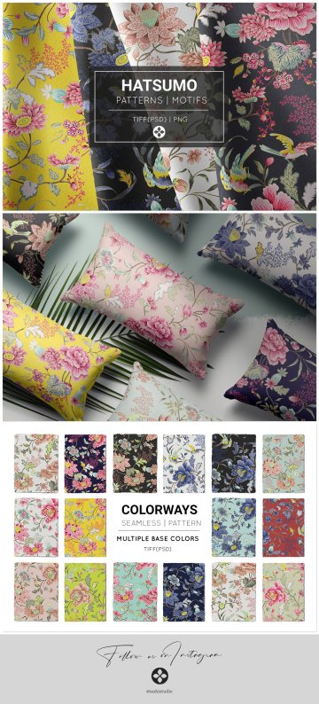 Hatsumo带有细致而细致的元素,并以多种基础颜色选项和3种主要配色发展成无缝模式。
