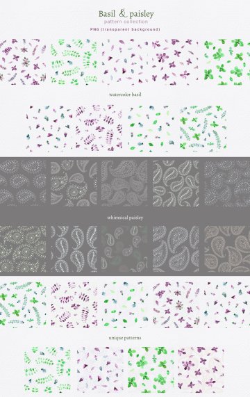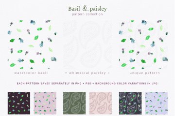 我很高兴向您介绍水彩图案系列Basil&Paisley。这是现代水彩和图形设置,旨在创建绿色和异想天开的设计。Set允许通过简单的方式配对和调整颜色来制作许多可爱的东西。
