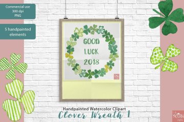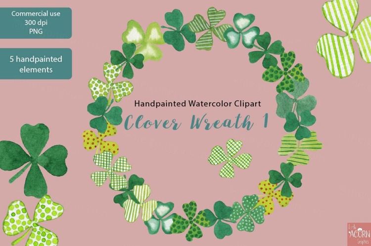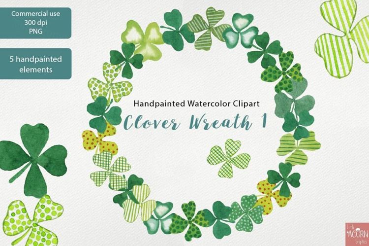 手绘水彩爱尔兰三叶草花环剪贴画素材 Clover wreat