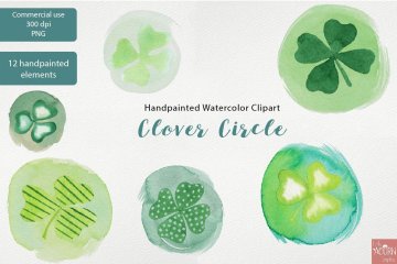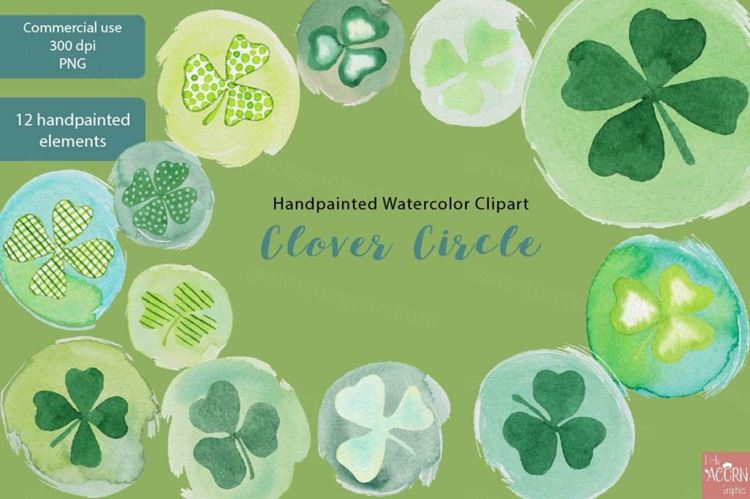 图穷联素材库 » 手绘水彩爱尔兰三叶草剪贴画素材 Watercolor Cli