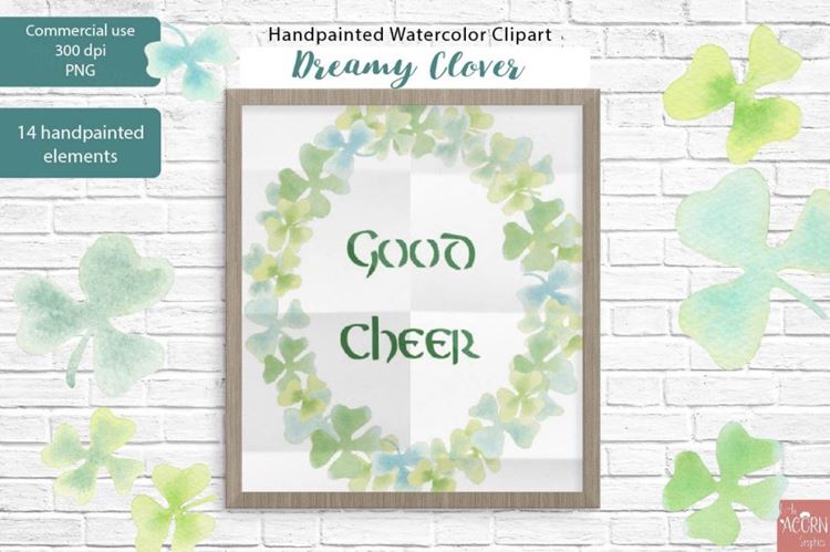 图穷联素材库 » 手绘水彩爱尔兰三叶草花环剪贴画素材 Watercolor C
