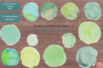水彩绿色墨迹笔触PNG素材 Handpainted Wate