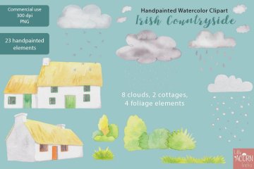 使用我最喜欢的Schmincke Horadam水彩颜料,这个水彩爱尔兰乡村手绘水彩剪贴画收藏集已经进行了精心的手绘。我以高分辨率扫描所有图像,并花费大量时间和精力清除每个水彩元素的边缘,以保留真实的水彩纹理并为您的纸张项目提供超干净的透明背景。