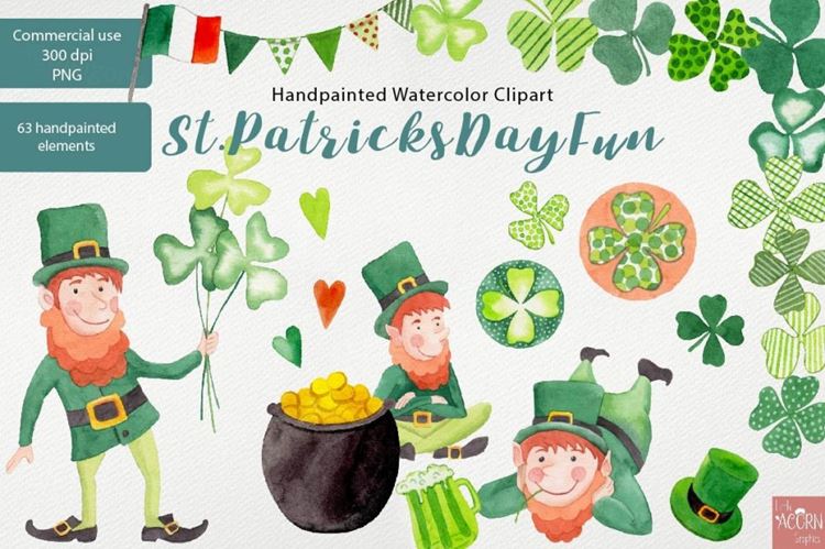 图穷联素材库 » 爱尔兰水彩手绘民族元素剪贴画素材 Watercolor Cl