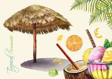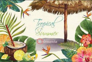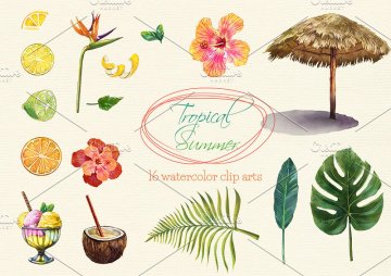 水彩手绘热带夏季元素剪贴画素材 Tropical Summe
