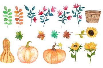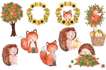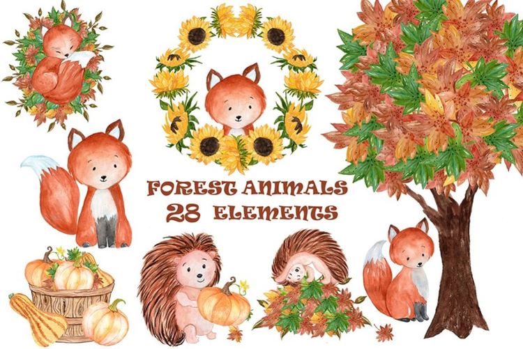 图穷联素材库 » 秋季森林动物花卉果实水彩手绘素材 Watercolor fo