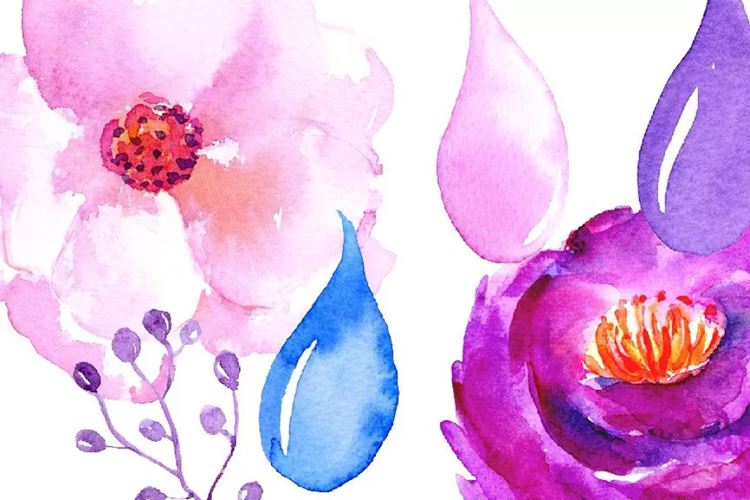 图穷联素材库 » 紫色水彩雨滴花瓣花卉剪贴画 Watercolor Purpl
