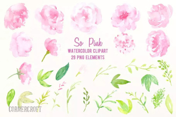图穷联素材库 » 粉色水彩牡丹花卉元素剪贴画 Watercolor Clipa