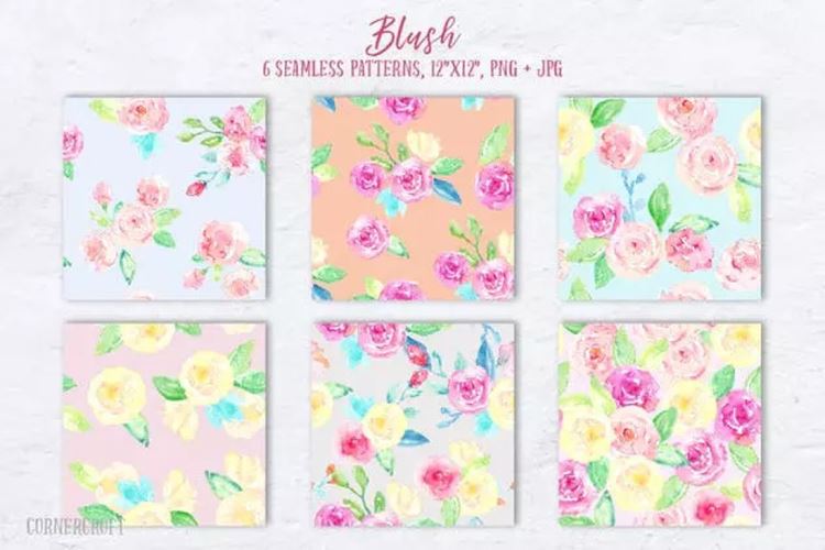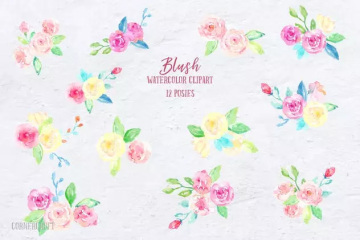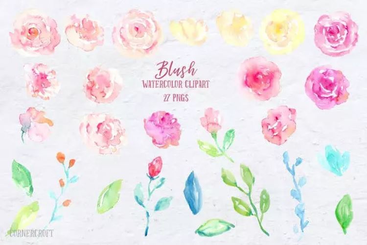 图穷联素材库 » 腮红水彩花卉插画合集 Watercolor Collecti