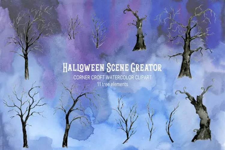 图穷联素材库 » 万圣节水彩元素场景生成器 Watercolor Hallow