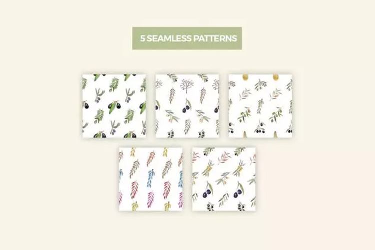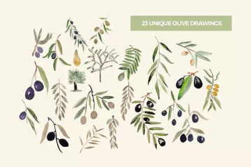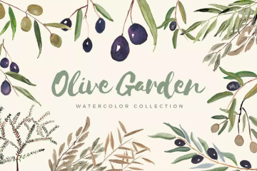 图穷联素材库 » 橄榄系列插画 Olive Garden Watercolor