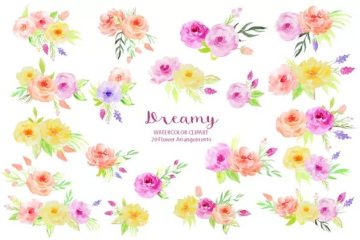 梦幻系列水彩花卉剪贴画 Watercolor Clipart