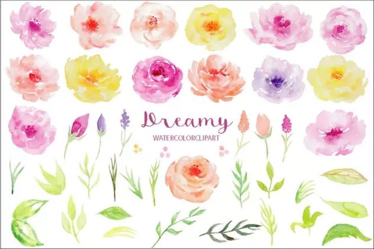 图穷联素材库 » 梦幻系列水彩花卉剪贴画 Watercolor Clipart