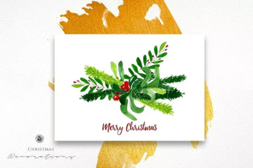 圣诞装饰绿色花环水彩插画 Watercolor Christ