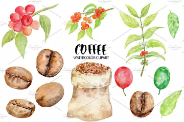 图穷联素材库 » 手绘水彩咖啡豆种植 Watercolor Coffee Be