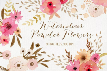 水彩少女粉彩色花卉剪贴画 Watercolour Powde