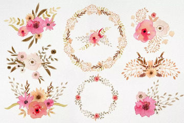 图穷联素材库 » 水彩少女粉彩色花卉剪贴画 Watercolour Powde