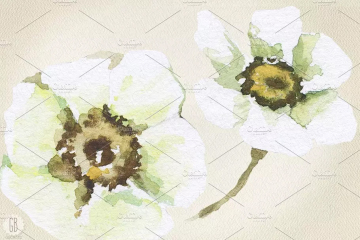 图穷联素材库 » 手绘逼真水彩花卉图像 Aquarelle white but