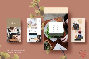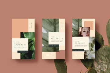 Natural Store Instagram Stories是一套包含Instagram故事和Square Posts的20种独特设计,可以使用中性的泥土色调,以干净简约的风格呈现您的品牌。