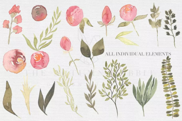 图穷联素材库 » 水彩手绘粉色调搭配花卉 Southern Charm Flo