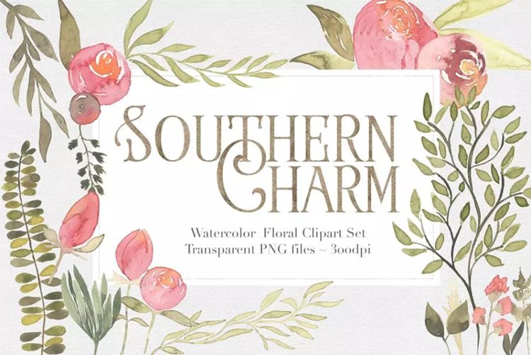 水彩手绘粉色调搭配花卉 Southern Charm Flo