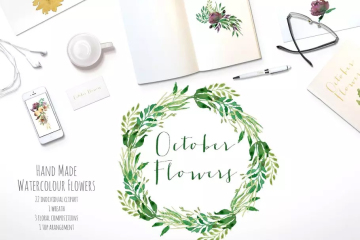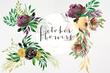图穷联素材库 » 手绘水彩秋季鲜花图形元素 October Flowers