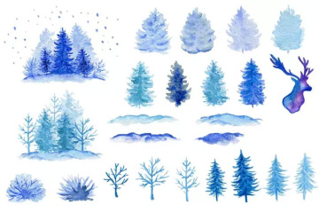 图穷联素材库 » 冬季水彩元素设计套装 Winter Watercolor D