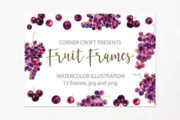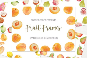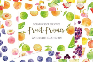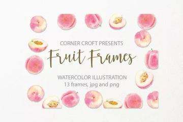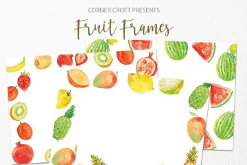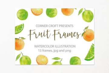 水果水彩手绘装饰框架插画 Watercolor fruit