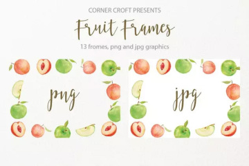 13个水果框架,png和jpg,8.2“x 11.6”英寸(A4),300 dpi。