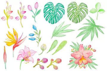图穷联素材库 » 热带主题手绘水彩图案合集 Watercolor Tropic