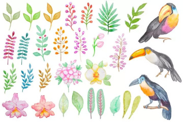 热带主题手绘水彩图案合集 Watercolor Tropic