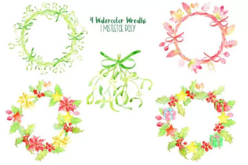 水彩圣诞节主题剪贴画 Watercolor Christma