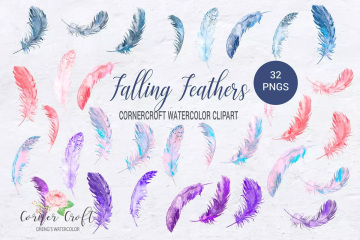 水彩羽毛元素剪贴画 Watercolor Falling F