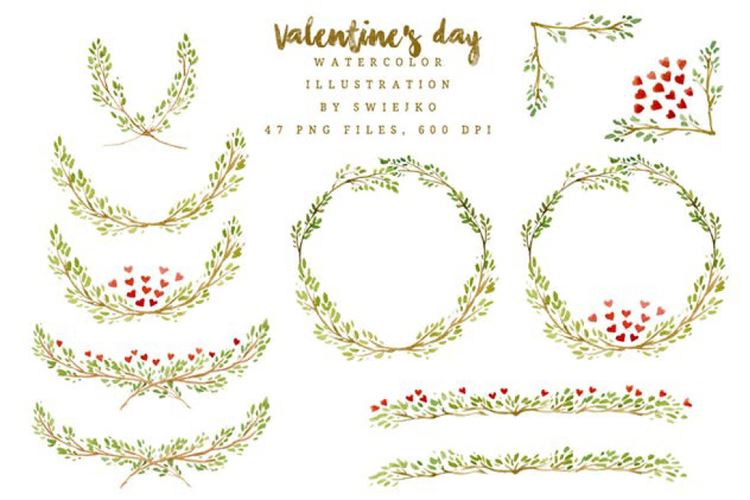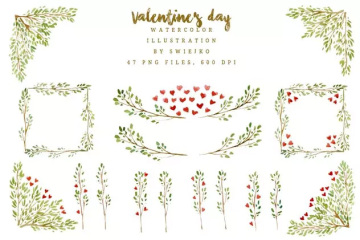 图穷联素材库 » 情人节手绘水彩叶子插画 Watercolor Valenti