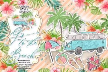 夏季海滩水彩剪贴画 Go to the Beach desi