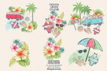 图穷联素材库 » 夏季海滩水彩剪贴画 Go to the Beach desi