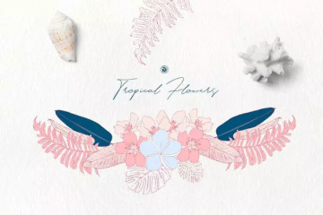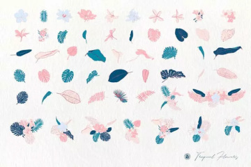 这组热带主题的手绘花卉剪贴画是DIY项目的理想素材,如邀请函,卡片,婚礼请柬,贺卡,标志,印刷设计,品牌,包装,海报,墙纸,博客,网站,广告等创意作品。