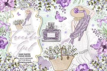图穷联素材库 » 紫色薰衣草女孩水彩剪贴画 Lavender Girl des