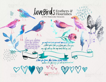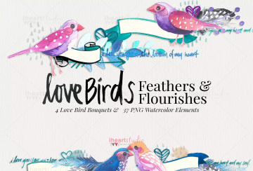 图穷联素材库 » 爱情相关的小鸟水彩画素材包