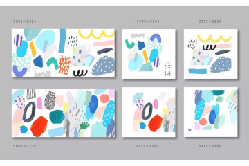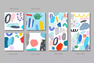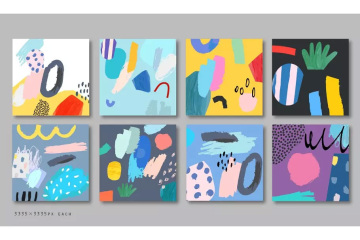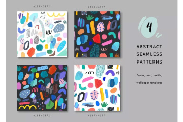 这组可爱有趣的涂鸦图形抽象元素包含4个无缝图案,可用于儿童主题设计项目,邀请函,贺卡,海报,剪贴簿,标签,织物和t恤设计等更多的设计项目。
