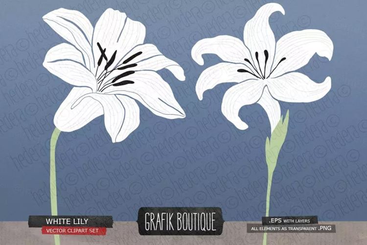 这组白百合&剑兰水彩剪贴画合集包括了24个数字文件。
